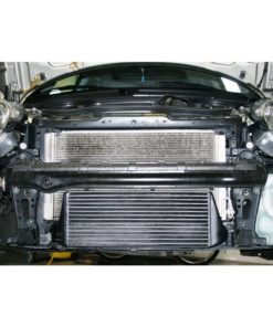 This Performance intercooler has the following core size (550mm x 210mm x 90mm / stepped), providing a 230% larger frontalarea and 116% more volume compared to the original intercooler.