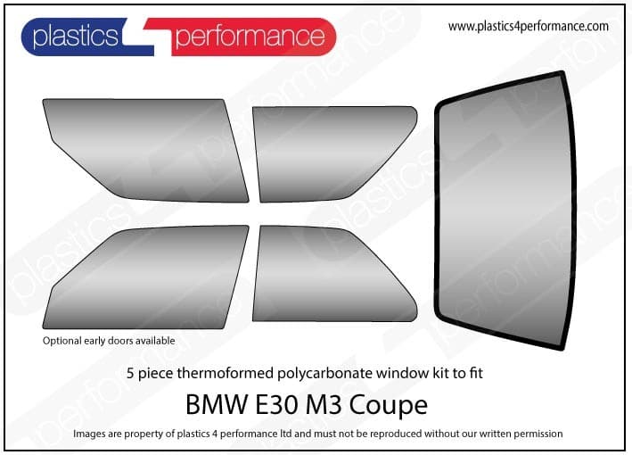 5 piece ‘professional’ quality fully thermoformed polycarbonate window kit to fit the BMW E30 M3