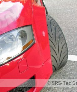 2.5 cm wider per side then the stock fenders, this set allows for much wider lower profile to the car. Fenders can be mounted without any modification on the front bumper.