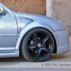 2.5 cm wider per side then the stock fenders, this set allows for much wider lower profile to the car. Fenders can be mounted without any modification on the front bumper.
